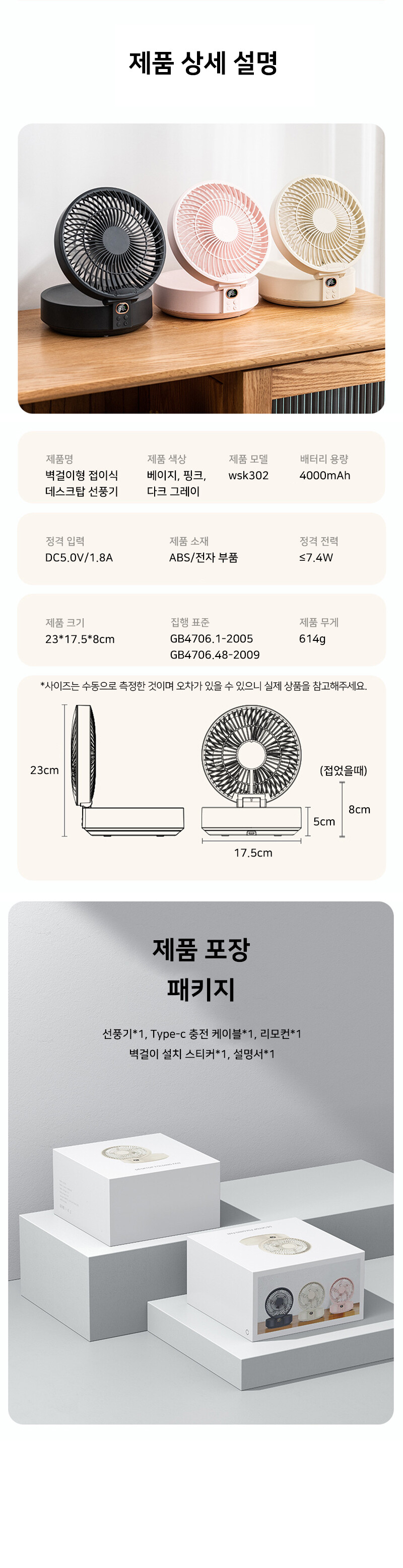 [월드온] KC인증 접이식 데스크탑/벽걸이 소형 선풍기