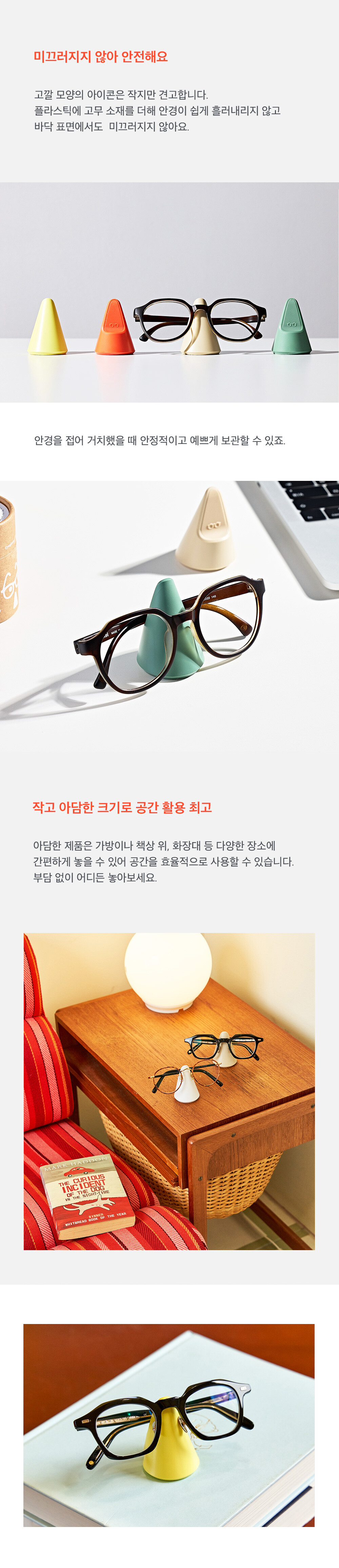 소중한 안경을 위해 쉴 곳을 마련해주세요. 조그만 크기로 다양한 곳에 두고 사용할 수 있어 실용적이며 안경을 보다 안전하게 보관할 수 있어요.