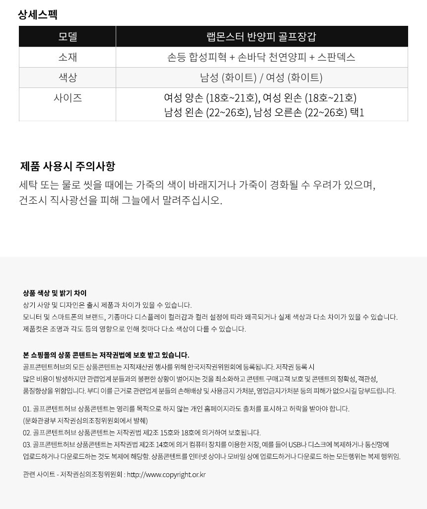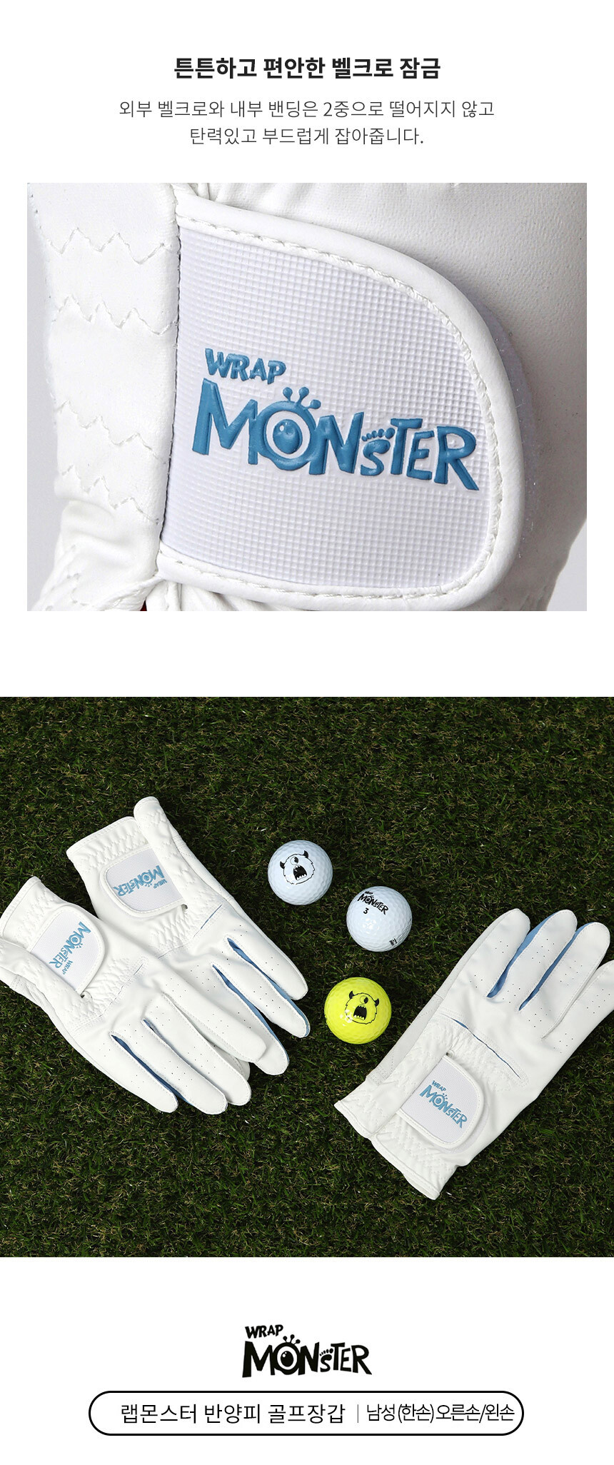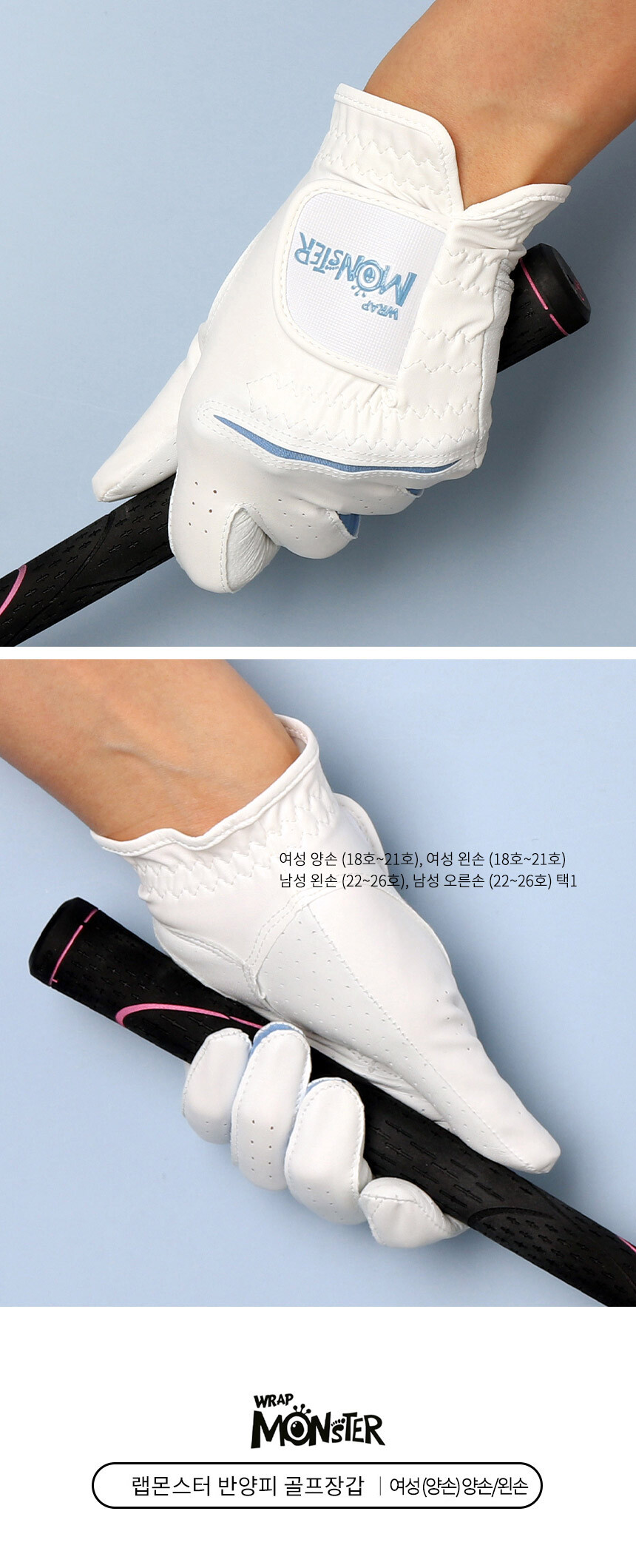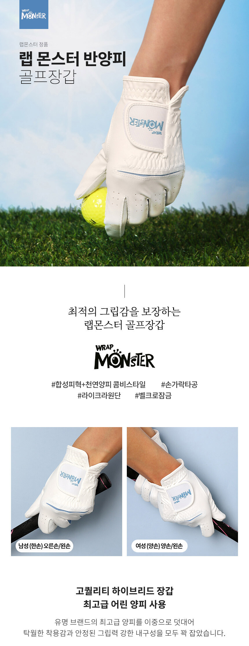 랩몬스터 반양피 남여 하이브리드 골프장갑 오른손/왼손 라운딩 연습용 필드용