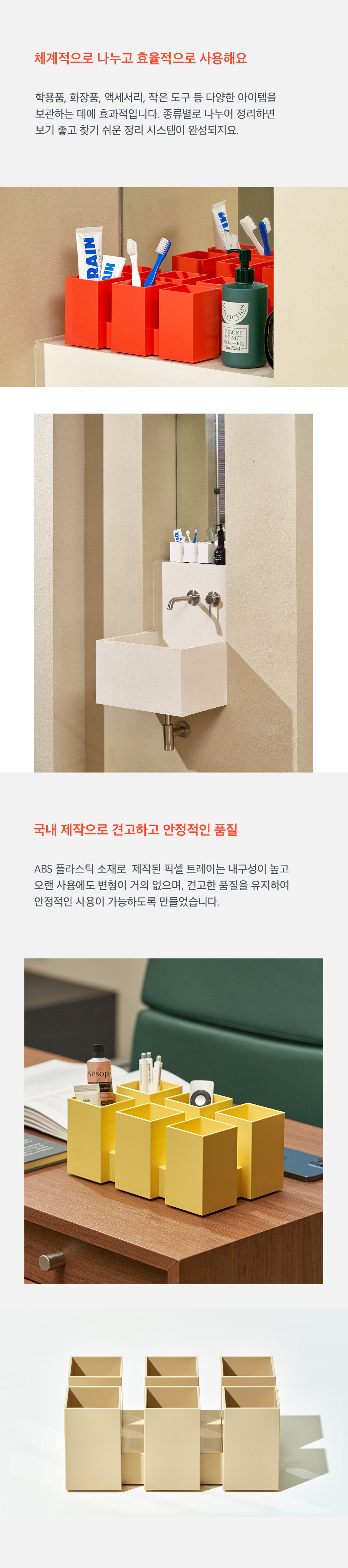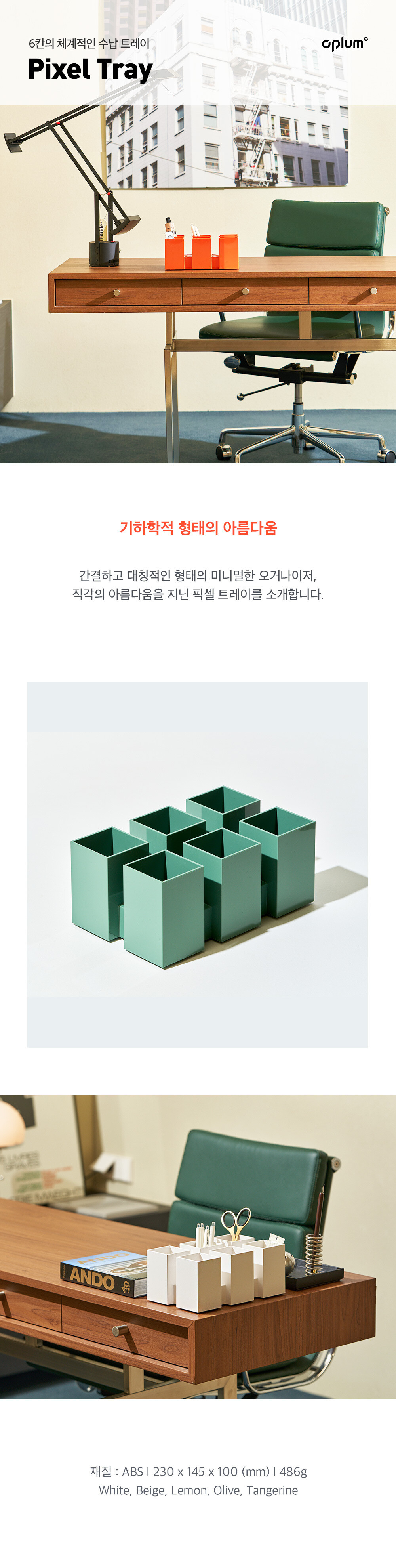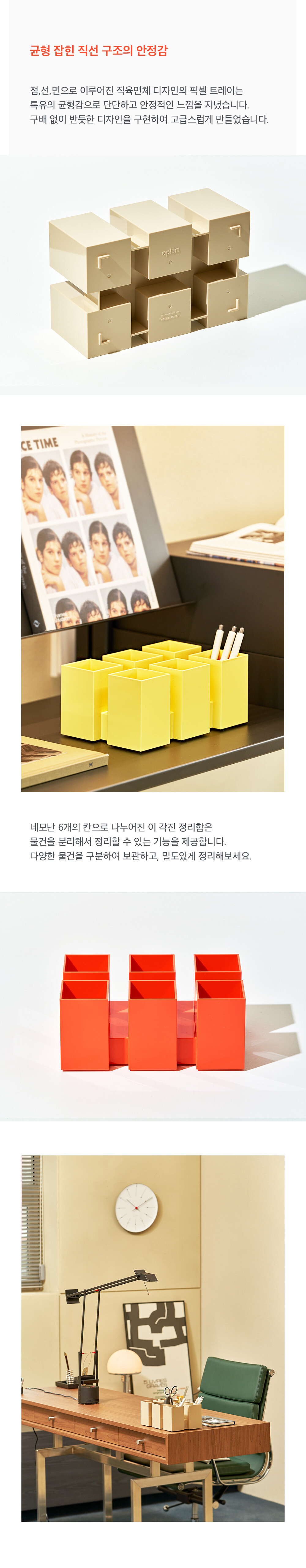 [픽셀 트레이] 6칸의 체계적인 수납 오거나이저입니다. 미니멀한 직선의 아름다움을 지닌 픽셀 트레이는 특유의 균형감으로 단단하고 안정적으로 디자인 되었습니다.